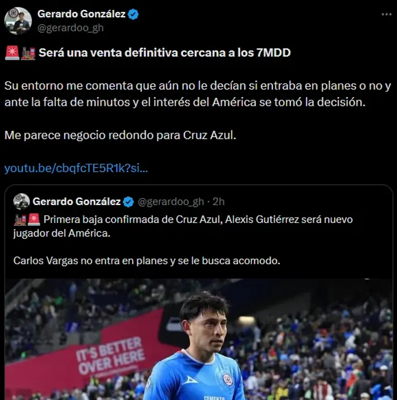 Por otro lado, Merlo reveló también que desde América inicialmente pagarían 5MDD por Gutiérrez, aunque esos 2MDD extra serían entre impuestos y otros recargos por la transferencia.