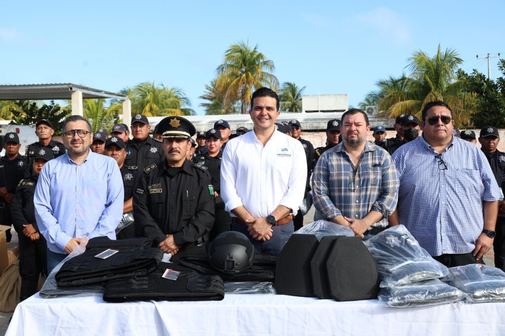 El H. Ayuntamiento de Progreso, encabezado por el alcalde Erik José Rihani González, realizó la entrega de uniformes operativos, equipo táctico, vehículos y mejoras adquiridas con recursos del FORTAMUN 2026, en un acto celebrado en la explanada de la Dirección de Seguridad Pública y Tránsito.
