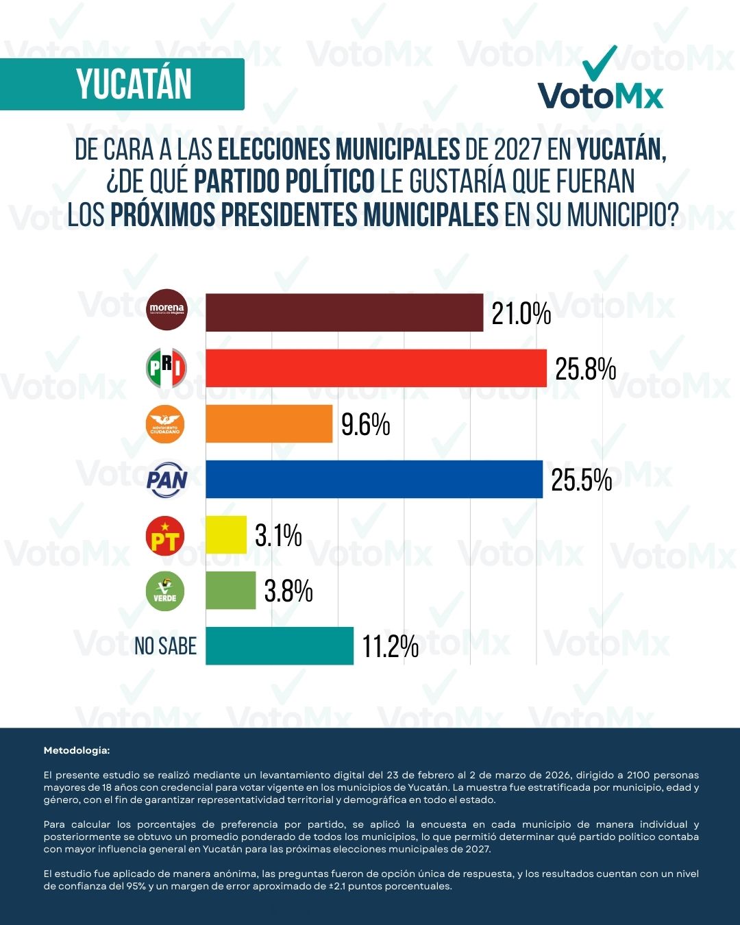 Una encuesta realizada por la casa VotoMx coloca al Partido Revolucionario Institucional al frente de las intenciones de voto del electorado, rumbo a los próximos comicios a realizarse en nuestra ciudad.