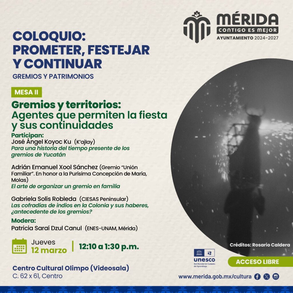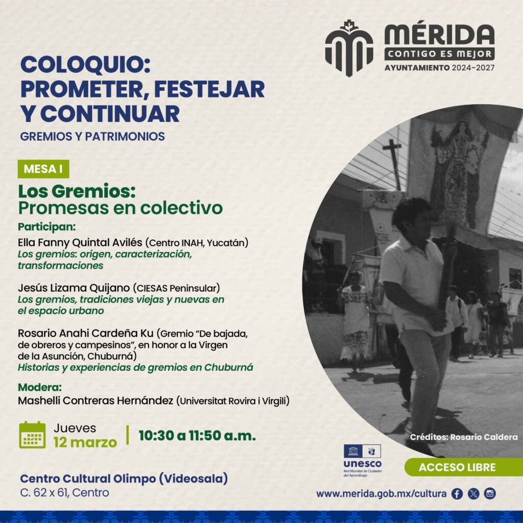 A través de tres mesas de conversación, el Ayuntamiento de Mérida que encabeza Cecilia Patrón Laviada organiza el Coloquio “Prometer, festejar y continuar, gremios y patrimonio”.