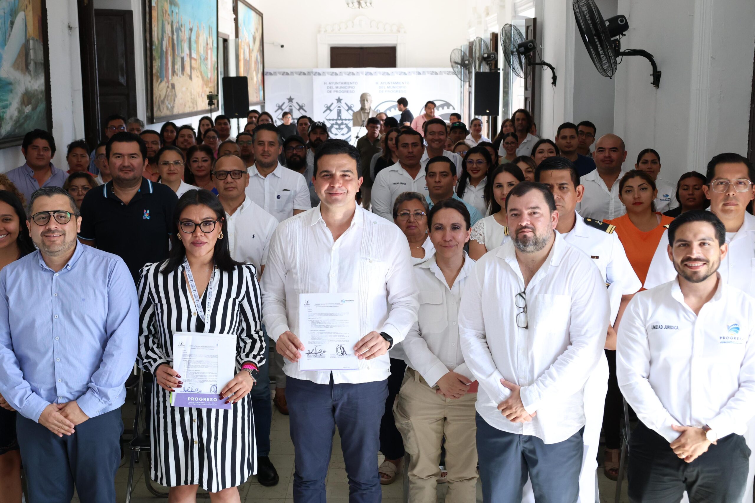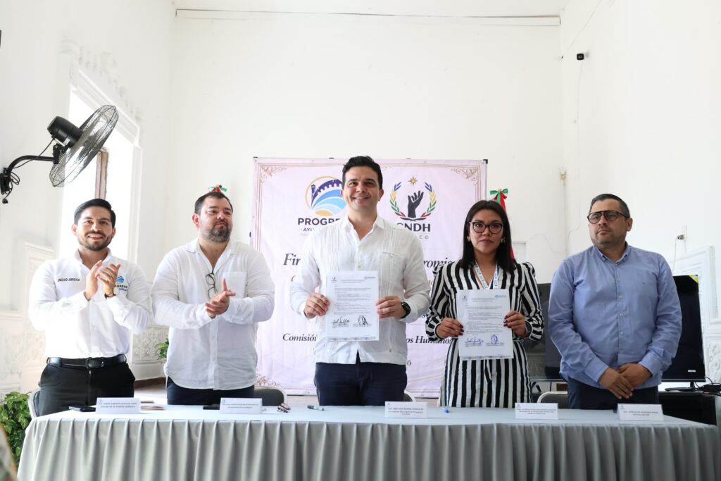 Con el objetivo de fortalecer la formación en materia de derechos humanos entre el personal del servicio público municipal, el Ayuntamiento de Progreso, encabezado por el alcalde Erik Rihani González, llevó a cabo la firma de una carta compromiso con la Comisión Nacional de los Derechos Humanos (CNDH), mediante la cual se impulsarán programas de capacitación dirigidos a diversas dependencias del municipio.