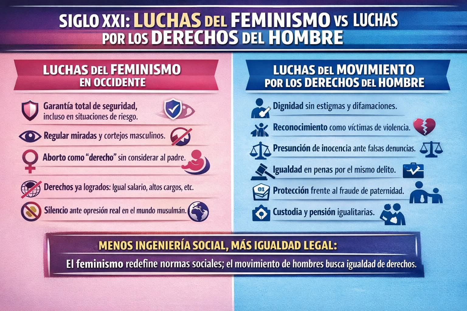 Y, sería igual irrespeto a los hombres que enfrentan los desafíos que todavía afectan significativamente al colectivo masculino (y sólo por aquello de que alguna quiera avergonzarse preguntando ¿cuáles? es que decidí dejar la imagen ilustrativa).