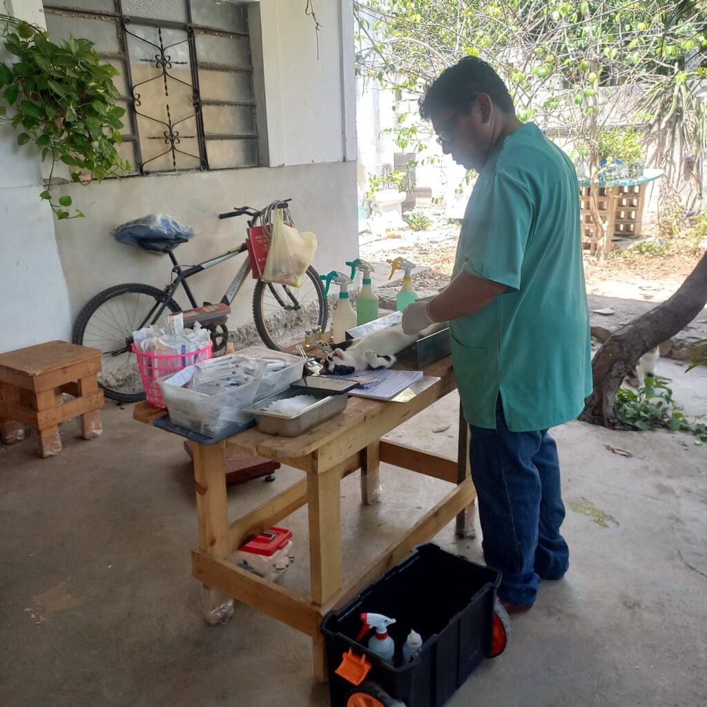 En esta ocasión, la brigada llegó a Caucel, comisaría de Mérida, donde se realizaron intervenciones gratuitas a perros y gatos, sumándose a las más de 400 mascotas que han recibido atención integral desde que dio inicio la campaña.